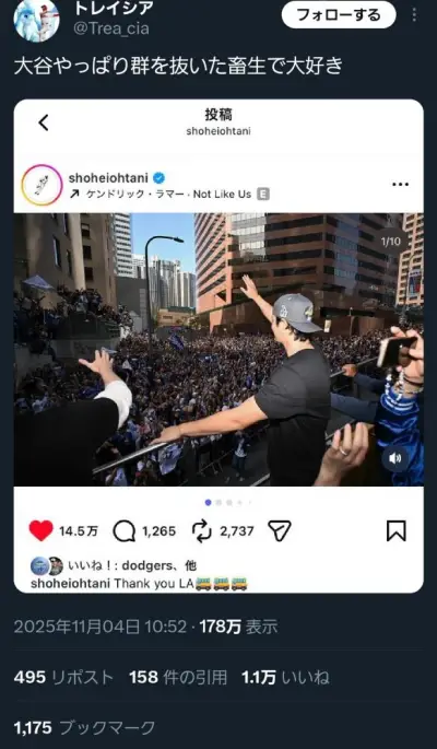 【画像】大谷翔平、インスタにとんでもない投稿をしてしまう・・・10万いいね