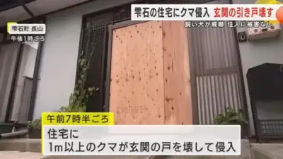 【朗報】クマサン、とうとう玄関を壊して家に侵入するも犬に吠えられあっけなく敗走wwww