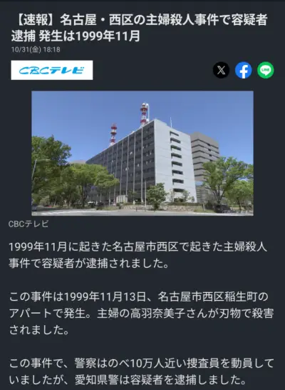 【速報】26年前の未解決殺人事件の犯人が逮捕される。明日にNHKで特集される予定だった模様