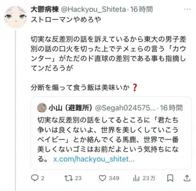 【画像】X民の間で「淫夢」が差別的コンテンツかどうかで一大論争になってしまう