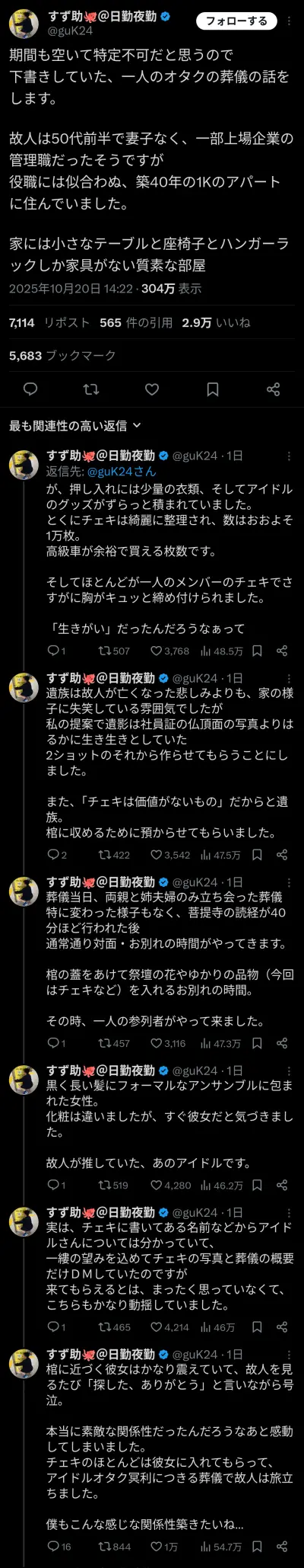 【悲報】死亡したアイドルオタクさん、推しに数千万円注ぎ込み自分はボロアパートに住み残されたチェキの山に家族に苦笑いされる…