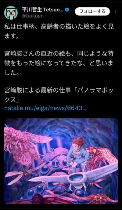 【画像】X識者「宮崎駿が高齢者の描く絵のパターンに入ったな、と思いました。」