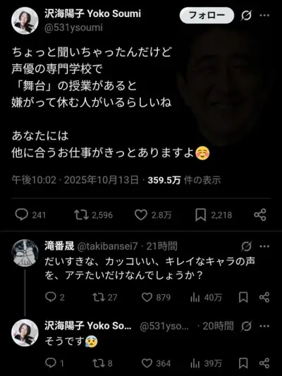【画像】ベテラン声優「声優の専門学校で舞台の授業があると休む人がいる」