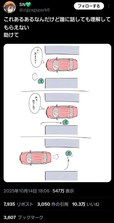 【画像】絵師「車運転した事ない人は絶対理解できないあるあるを描きました」