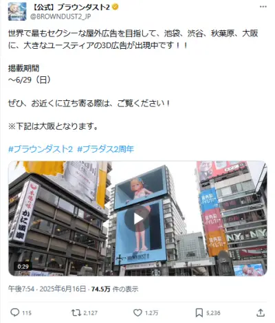 【動画】人気ソシャゲの街頭広告、一線を超えてしまうwwwww