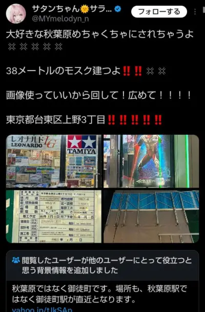 【画像】女性「オタクくん、秋葉原にモスク建てられてめちゃくちゃにされちゃうよ。オタクくん今すぐ拡散して!」