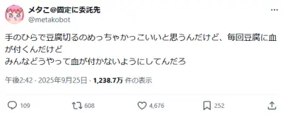 【画像】X民「手のひらの上で豆腐を切ると毎回豆腐に血が付く。なんで?」→結果
