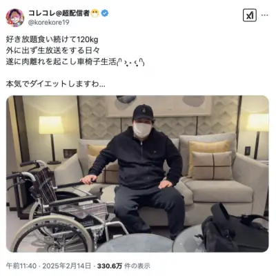【画像】120キロ超えデブのコレコレさん、痩せ薬『マンジャロ』で遂に体重2桁へ。効果すごすぎだろ