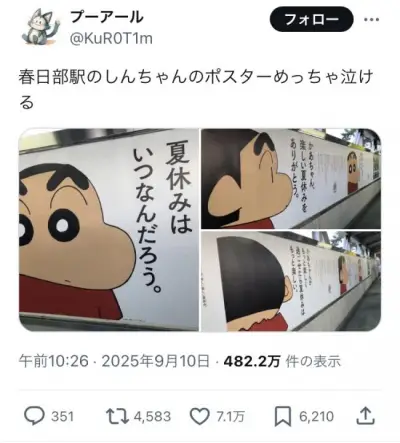 【感動】X民「春日部駅のクレしんポスターめっちゃ泣ける」 7.1万いいね