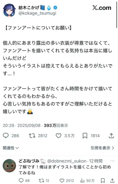 人気Vtuber「露出の高いファンアート描くのやめろッッッ!!!!!」