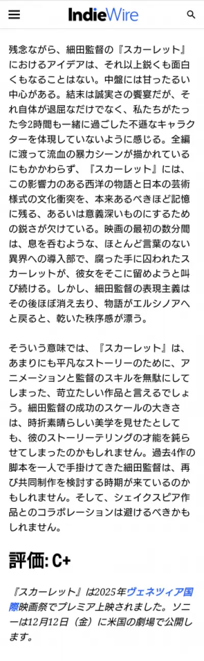 【悲報】細田守監督待望の最新作「果てしなきスカーレット」、海外で痛烈批判されるwwwwwwwww