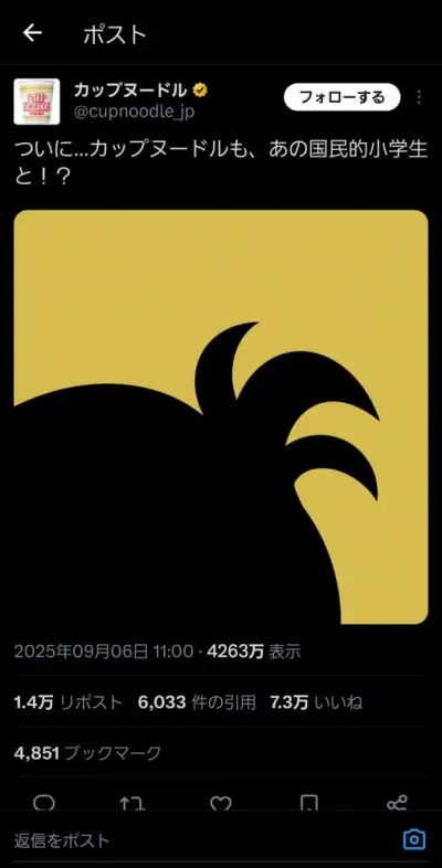 カップヌードル「あの国民的小学生と!?」コラボ匂わせのシルエットクイズ、みんなの予想が二分される