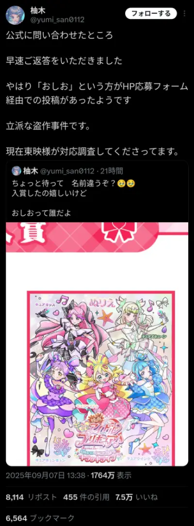 【画像】プリキュアおじさん、子供向けの塗り絵コンテストで盗作されて賞を奪われ発狂wwwwwwwwwwwwwww