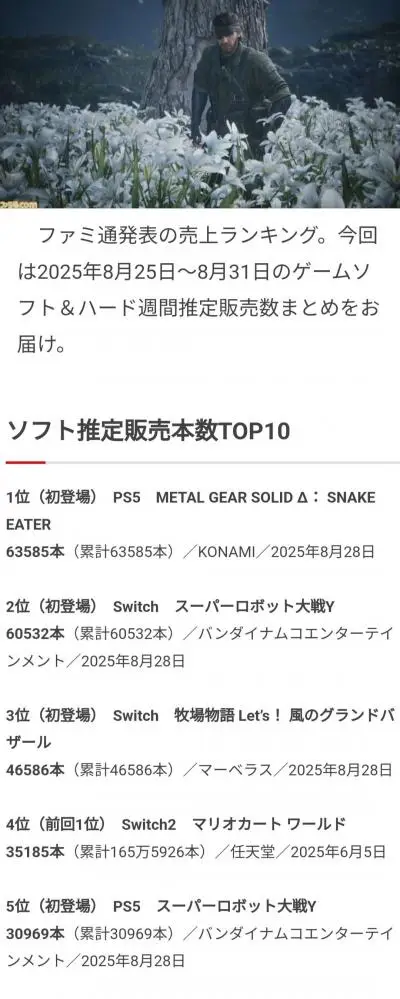 【衝撃】メタルギアリメイクとスパロボYの売り上げ、ヤバい