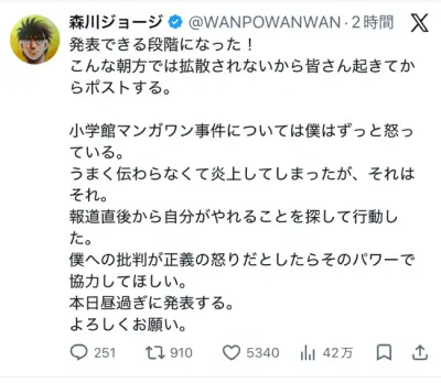 【悲報】森川ジョージさん、被害者のために動くも漫画家から嫌われてしまう