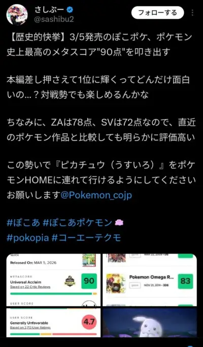 【朗報】ぽこあポケモン、ポケモン史上最高のメタスコアを叩き出す神ゲーの模様wwwwwwwww