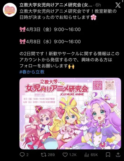 【画像】立教大学、「女児アニメ」研究会の新歓開始wwwwwwwwwwwww