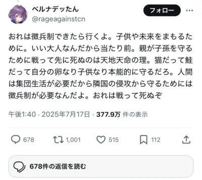 【朗報】ひきこもりオタク「おれは、徴兵制できたら行くよ。おれは戦って死ぬぞ」