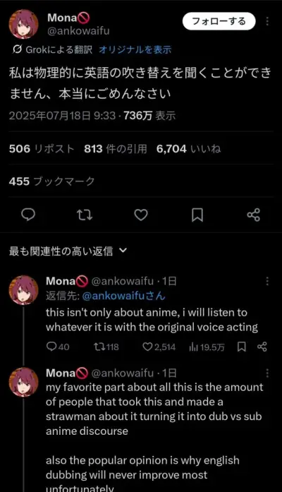 【正論】海外オタクさん「アニメの英語吹き替えはマジで無理」→大荒れに