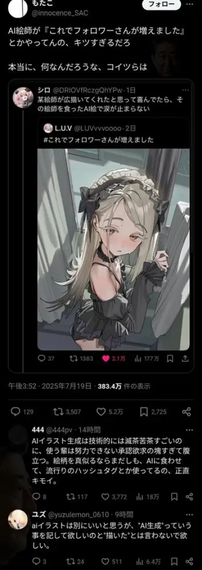 【悲報】AI絵師()さん、承認欲求がキツすぎると炎上wwwwww