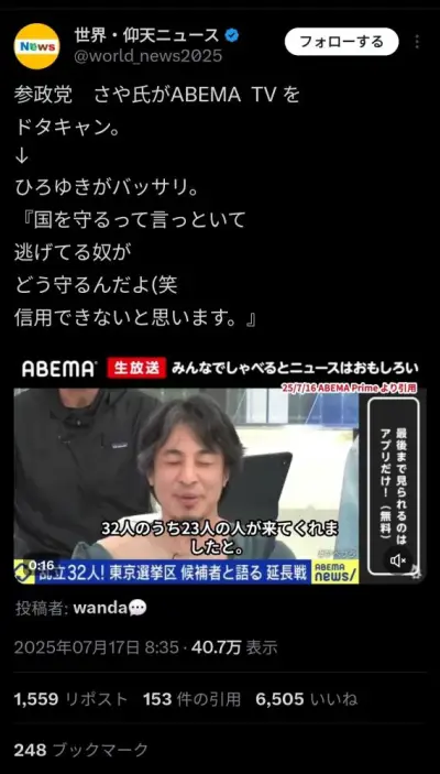 【悲報】ひろゆき、参政党を猛批判「討論会から逃げてる奴がどう国を守るの??笑」