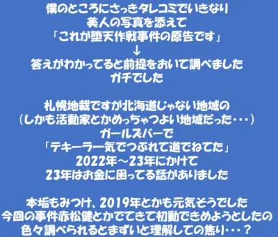 【悲報】大物X民「マンガワン事件の被害者は事件後も元気にガールズバーで働いてた。痴情のもつれでは?」