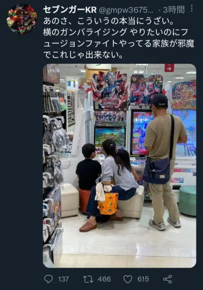【悲報】仮面ライダーオタクさん、ゲームで遊ぶ家族連れに苦言を呈する