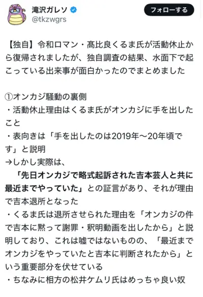 【悲報】令和ロマンくるま、ガレソに追撃暴露され逝くwwwwwwww
