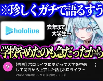 【疑問】ホロライブ新人「ホロライブ受かったから大学辞めて上京しました」←大学辞めてまですることか?