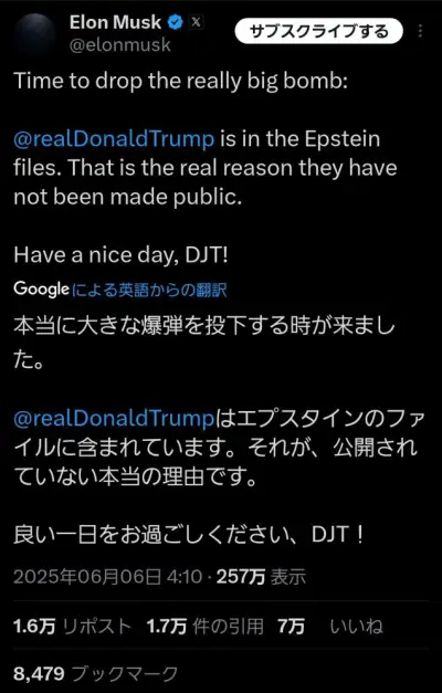 【悲報】イーロン・マスク、急にトランプのヤバい暴露を始めるwwwwwwww