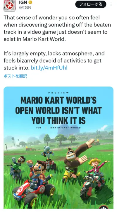 【速報】海外メディア、マリオカート新作のオープンワールドをスカスカだと批判