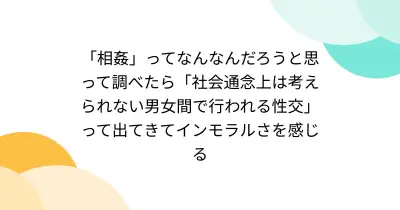 「相姦」ってなんなんだろうと思って調べたら「社会通念上は考えられない男女間で行われる性交」って出てきてインモラルさを感じる