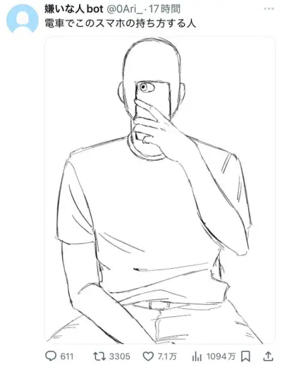【画像】X民「電車でスマホこの持ち方するやつなんなん」1094万閲覧
